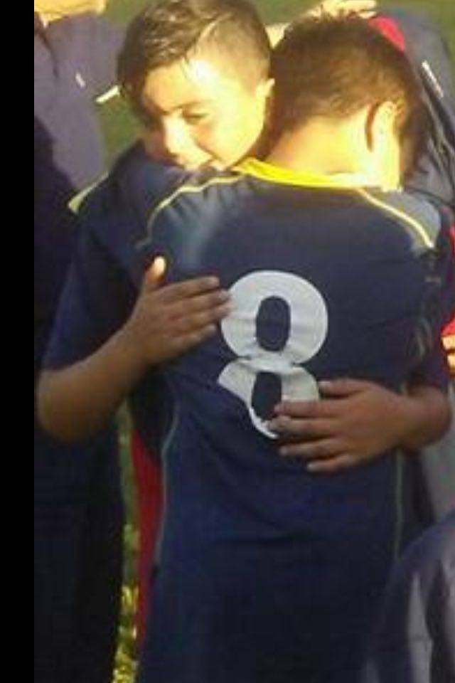 Il piccolo “pulcino” Luigi si avvicina al compagno maggiore “esordiente” Lorenzo, e gli concede la spalla per consolarlo…. un abbraccio del quale probabilmente non riuscirà neanche a cogliere in pieno il valore …ma che è stato colto con gioia da chi ha pensato bene di immortalare tanta cavalleria.