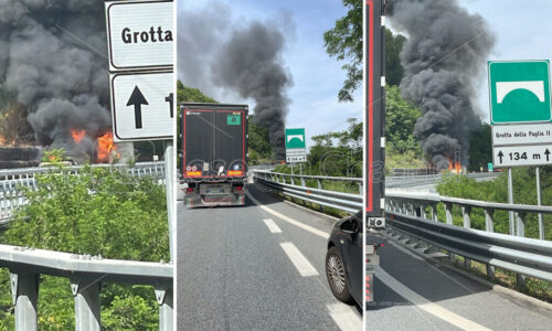 “Il fatto si è verificato al chilometro 285, tra gli svincoli di Rogliano e Altilia, in un tratto di strada dove c’è un restringimento della carreggiata e si procede a una corsia. Traffico bloccato con code chilometriche. Secondo quanto si apprende, l’autista ha fatto in tempo a scendere dal mezzo pesante e si è messo dunque in salvo.”