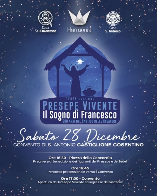 Sabato 28 dicembre, Harmonia Arte Musica e Spettacolo con la partecipazione della Fondazione Casa San Francesco d’Assisi, daranno il via alla terza edizione de “Il Sogno di Francesco”