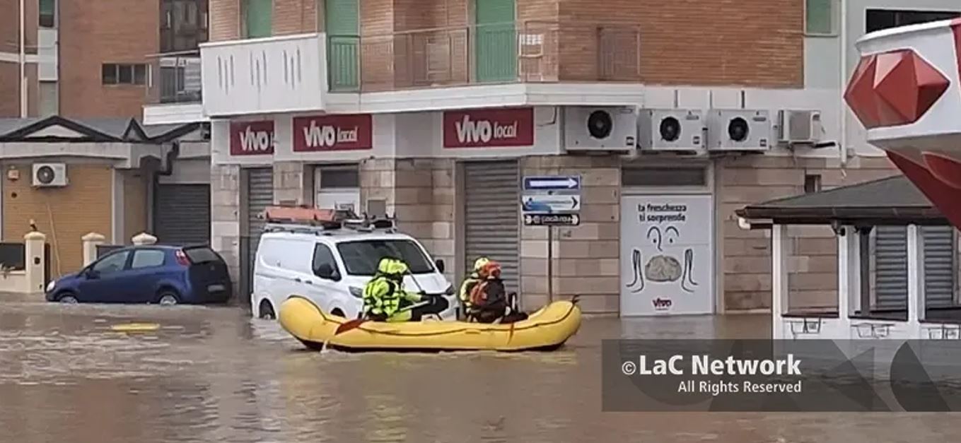 “Mareggiate e onde altissime hanno invaso strade, lungomare e case. Inondati anche esercizi commerciali e l’ufficio postale nell’area del porto. Circa dieci i palazzi circondati dall’acqua, nell’area del porto in particolare. I residenti bloccati al momento nelle loro abitazioni. “