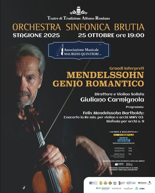 “Armonie Trasversali”, l’orchestra Sinfonica Brutia e il celebre violinista Carmignola omaggiano Mendelssohn al Teatro A. Rendano di Cosenza Ottobre 24,12:00 AM By Redazione In EVENTI|News,Società,