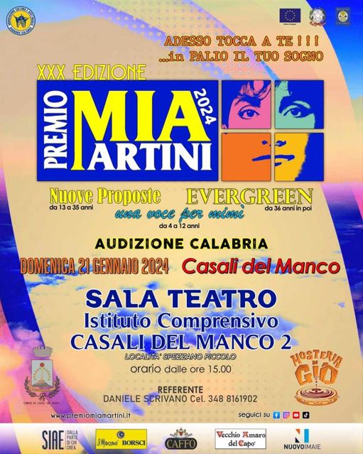 “Adesso tocca a te”: audizioni per la XXX edizione del Premio Mia Martini Gennaio 9,12:00 AM By Redazione In EVENTI|News