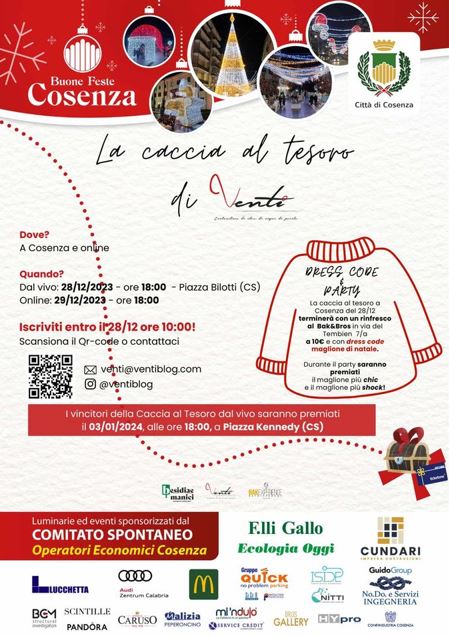 Arriva la caccia al tesoro di Venti, online e a Cosenza Dicembre 28,12:00 AM By Redazione In EVENTI|News