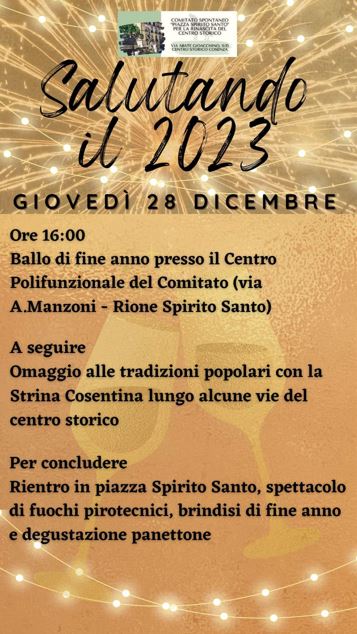 Il Comitato Spontaneo “Piazza Spirito Santo” organizza il ballo di fine anno a Cosenza Dicembre 27,12:00 AM By Redazione In EVENTI|News
