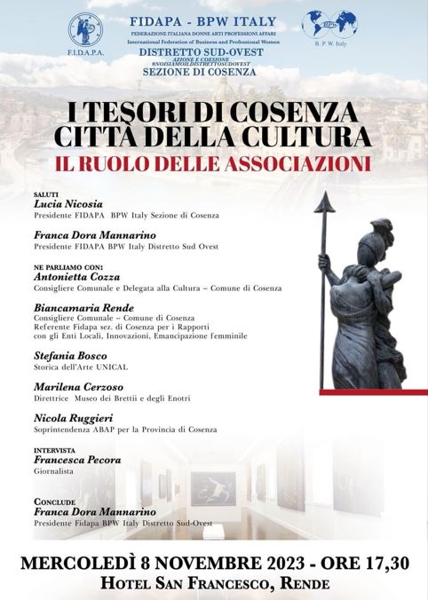 La Fidapa sezione di Cosenza organizza un convegno sulla valorizzazione dei tesori culturali della città Novembre 8,12:00 AM By Redazione In EVENTI|News