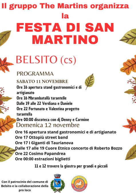 Il gruppo The Martins organizza la Festa di San Martino a Belsito Novembre 7,12:00 AM By Redazione In EVENTI|News