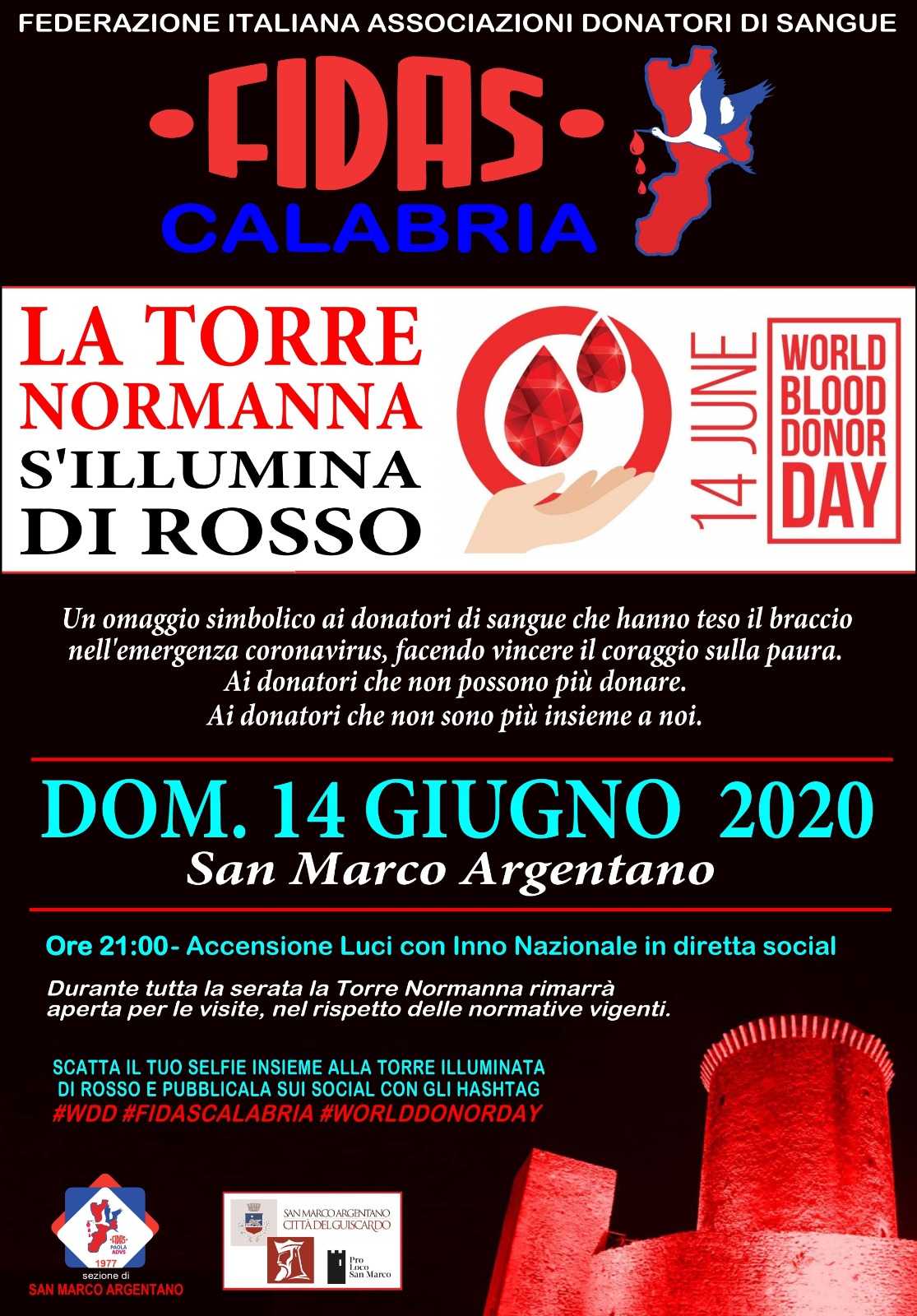 Giornata Mondiale del Donatore di Sangue – Stasera torre normanna di San Marco Argentano illuminata di rosso Giugno 14,12:00 AM By Redazione In EVENTI|News