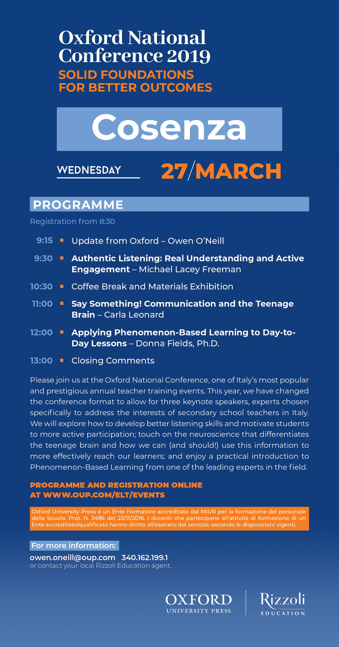 Arriva a Cosenza La “Oxford National Conference 2019”, mancava in Calabria da molti anni (Programma) Marzo 23,12:00 AM By Redazione In EVENTI|News