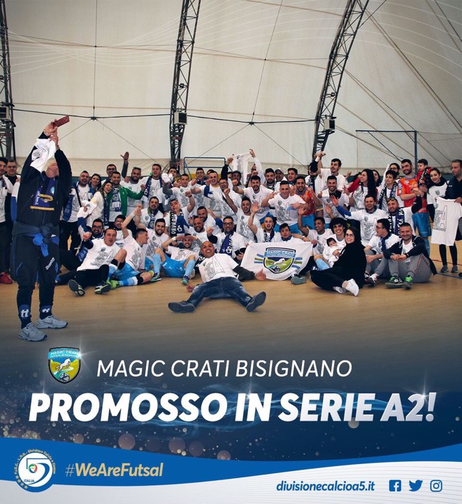 La Magic Crati Bisignano futsal calcio a 5 promossa in serie A2. Stasera la festa a Cosenza Aprile 12,12:00 AM By Redazione In EVENTI|News