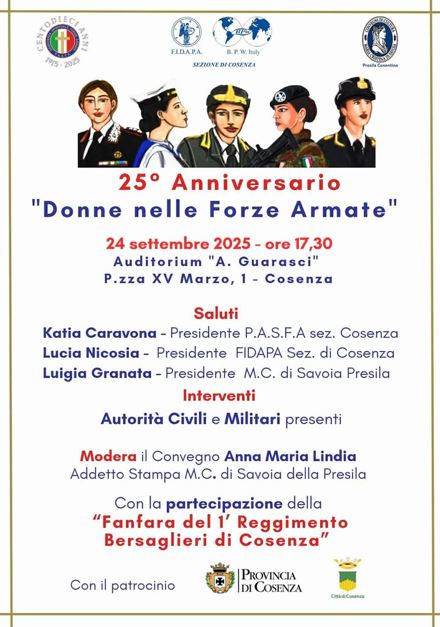 A Cosenza il 25° anniversario dell’ingresso ufficiale delle donne nelle Forze Armate italiane Settembre 22,12:00 AM By Redazione In EVENTI|News,Società,