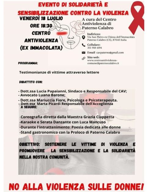 Evento solidale contro la violenza sulle donne presso il centro antiviolenza di Paterno Calabro Luglio 15,12:00 AM By Redazione In EVENTI|News,Società,