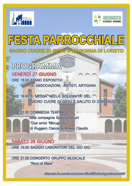 Cosenza – Festa della parrocchia a piazza Loreto con la musica dei i Ricci di mare e la cucina della vineria Tucci Giugno 23,12:00 AM By Redazione In EVENTI|News,Società,