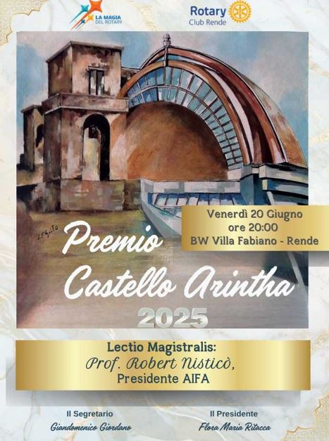 Premio “Castello Arintha” 2025 – Il prestigioso riconoscimento del Rotary Rende assegnato al Prof Robert Nisticò Giugno 17,12:00 AM By Redazione In EVENTI|News,Società ,