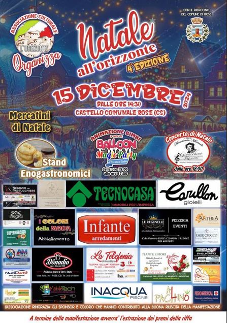 Il Castello Comunale di Rose si veste di magia natalizia per la IV edizione di Natale all’Orizzonte Dicembre 10,12:00 AM By Redazione In EVENTI|News,Società,