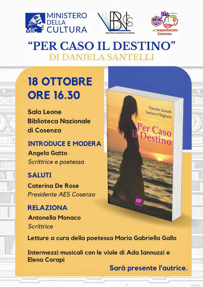 A Cosenza presentazione del romanzo “Per Caso il Destino” della scrittrice cosentina Daniela Santelli Ottobre 18,12:00 AM By Redazione In EVENTI|News,Società,