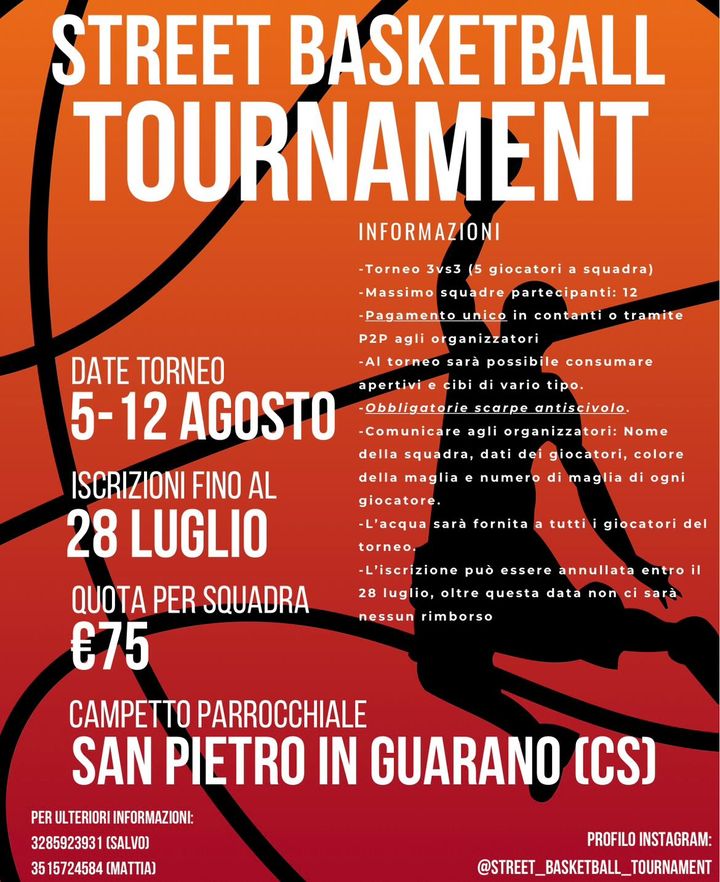 Arriva il primo “Street Basketball Tournament” di San Pietro in Guarano. Aperte le iscrizioni: Luglio 10,12:00 AM By Redazione In EVENTI|News,Società,