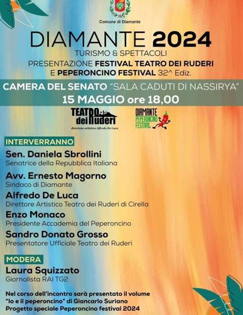 Presentazione del programma estivo del Teatro dei Ruderi di Cirella e del Peperoncino Festival presso la Camera del Senato Maggio 13,12:00 AM By Redazione In EVENTI|News,Società,