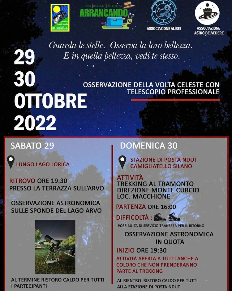 Nel weekend due appuntamenti imperdibili per osservare il cielo stellato della Sila Ottobre 28,12:00 AM By Redazione In EVENTI|News,Società,