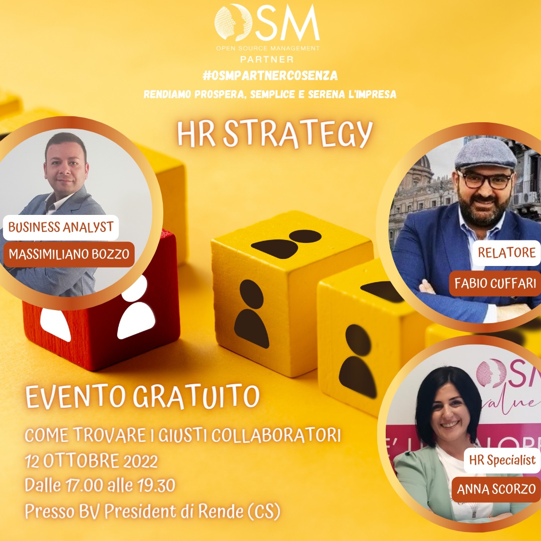 “Come trovare i giusti collaboratori” – Corso gratuito settimana prossima a Rende Ottobre 6,12:00 AM By Redazione In EVENTI|News,Società,