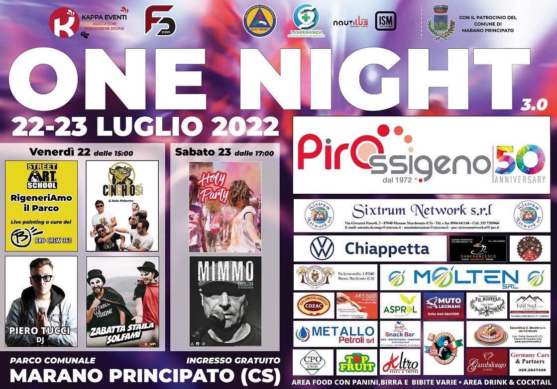 Marano Principato – Questo weekend ritorna dopo tre anni l’evento One Night (3.0) Luglio 20,12:00 AM By Redazione In EVENTI|News,Società,