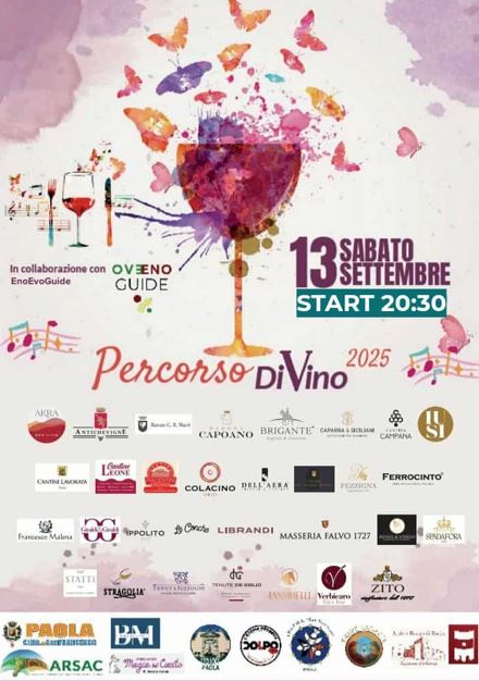 Paola – Tutto pronto per l’evento “Percorso DiVino 2025” Settembre 12,12:00 AM By Redazione In EVENTI|News,Società,