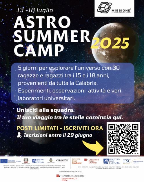 All’Unical arriva “Astro Summer Camp – Un’esperienza unica tra stelle” Giugno 23,12:00 AM By Redazione In EVENTI|News,Società,