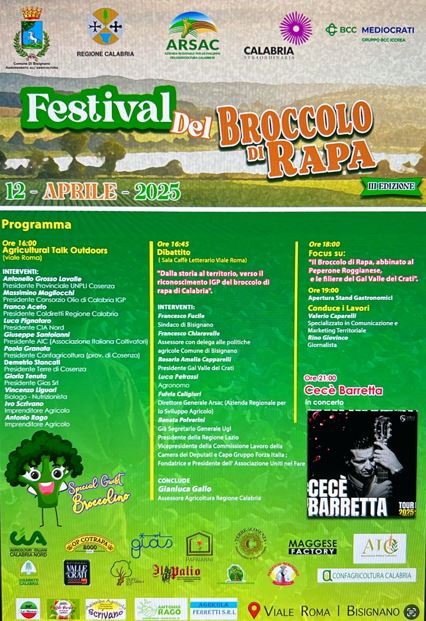 A Bisignano la III edizione del Festival del Broccolo di Rapa 2025 Aprile 10,12:00 AM By Redazione In EVENTI|News,Società,