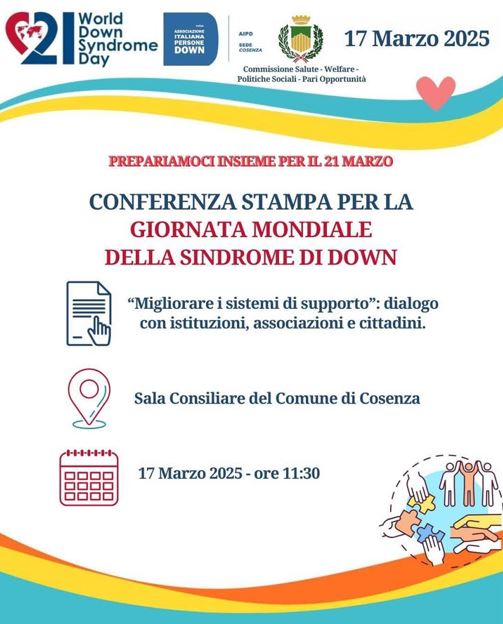 A Cosenza conferenza stampa per la Giornata Mondiale della Sindrome di Down Marzo 10,12:00 AM By Redazione In EVENTI|News,Società,