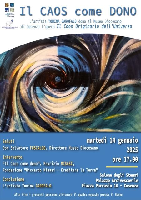 Tonina Garofalo dona l’opera “Il Caos originario dell’Universo” al Museo Diocesano di Cosenza Gennaio 13,12:00 AM By Redazione In EVENTI|News,Società,