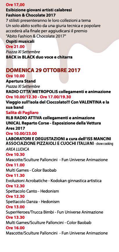 Cosenza: Festa del Cioccolato 2017 – Il Programma: Ottobre 24,12:00 AM By Redazione In EVENTI|News|TURISMO