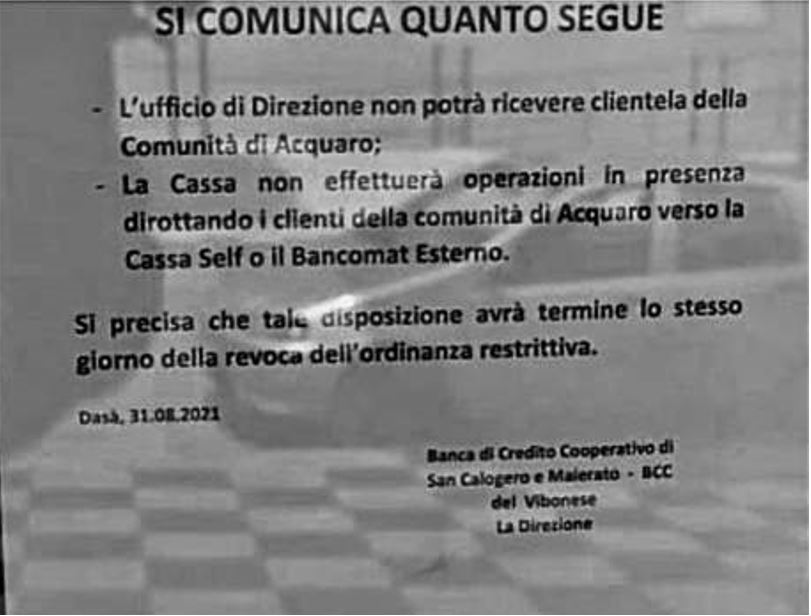 Calabria – Banca vieta l’accesso a clienti provenienti da Acquaro, paese con molti casi positivi al Covid Settembre 6,12:00 AM By Redazione In Cronaca,News,