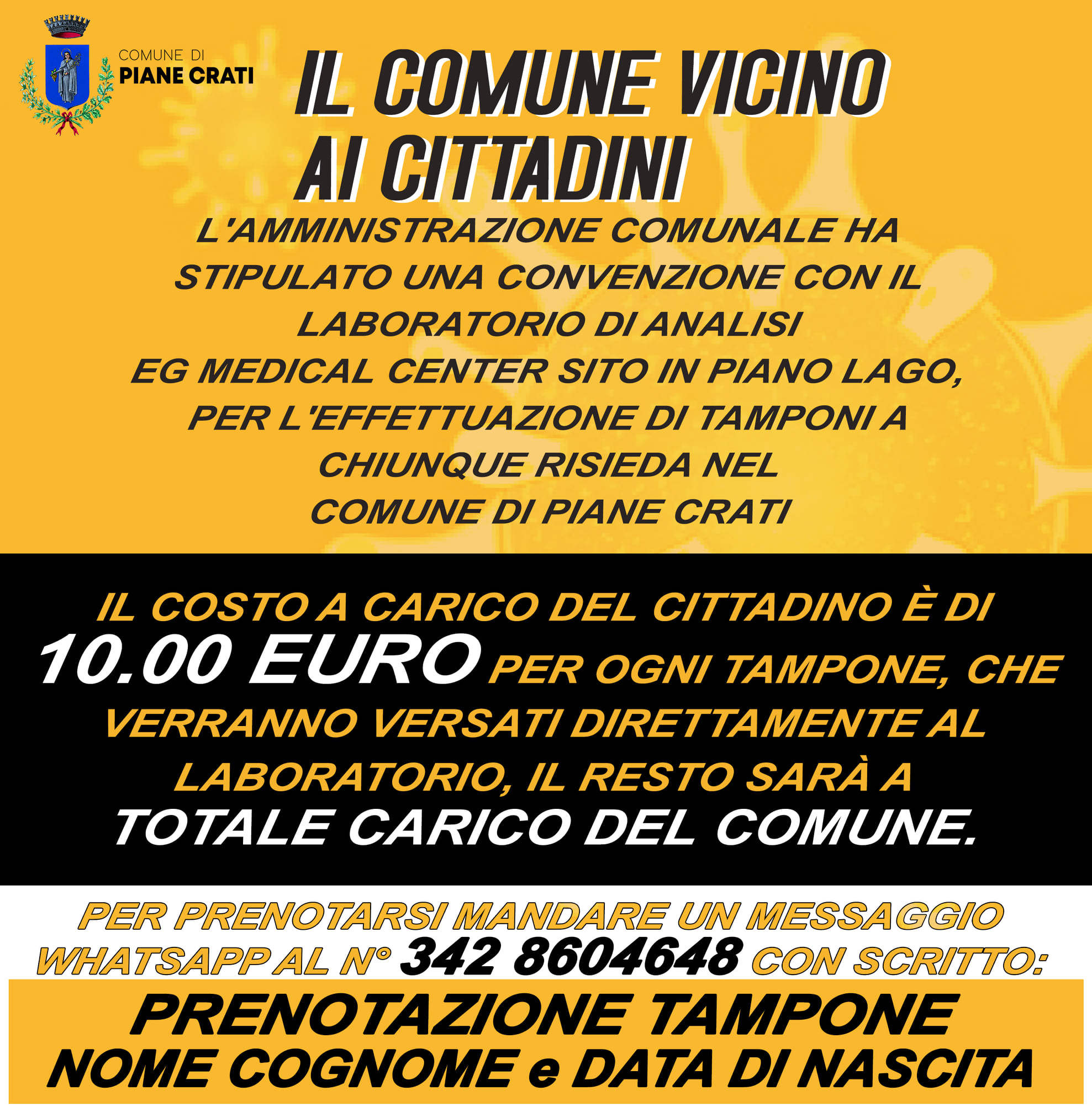 Il comune di Piane Crati in aiuto ai cittadini per effettuare il tampone Novembre 20,12:00 AM By Redazione In Cronaca,News,