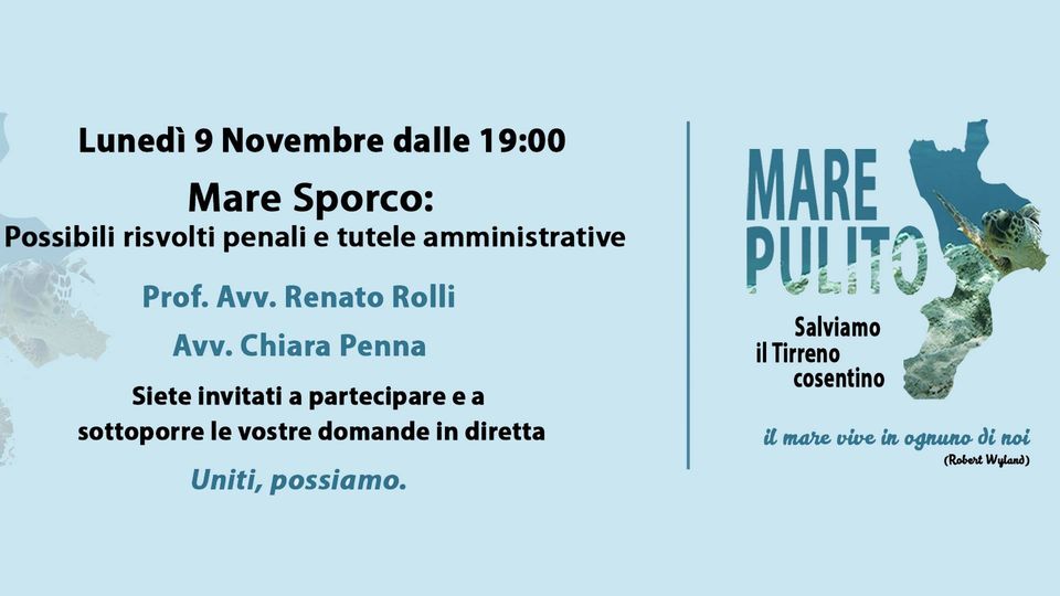 “Mare Pulito”: continua la battaglia per la costa tirrenica cosentina Novembre 5,12:00 AM By Redazione In Cronaca,News,