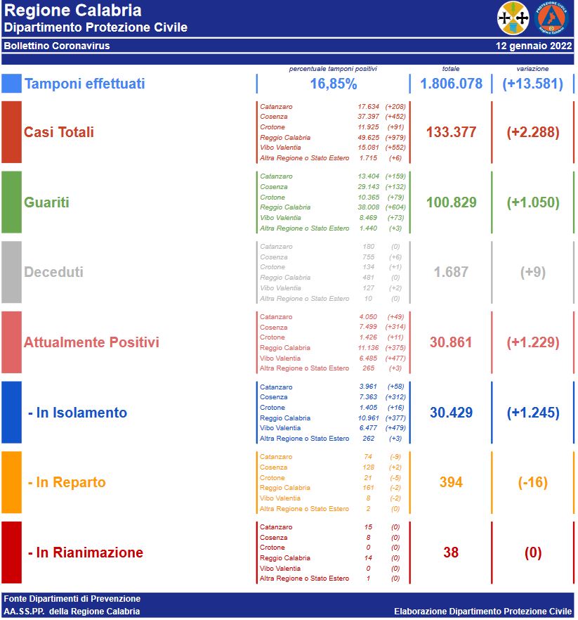 Covid Cosenza, 452 nuovi casi in provincia. In Calabria 2.288 contagi e 9 morti, diminuiscono i ricoveri Gennaio 12,12:00 AM By Redazione In Cronaca|News,News,Salute,