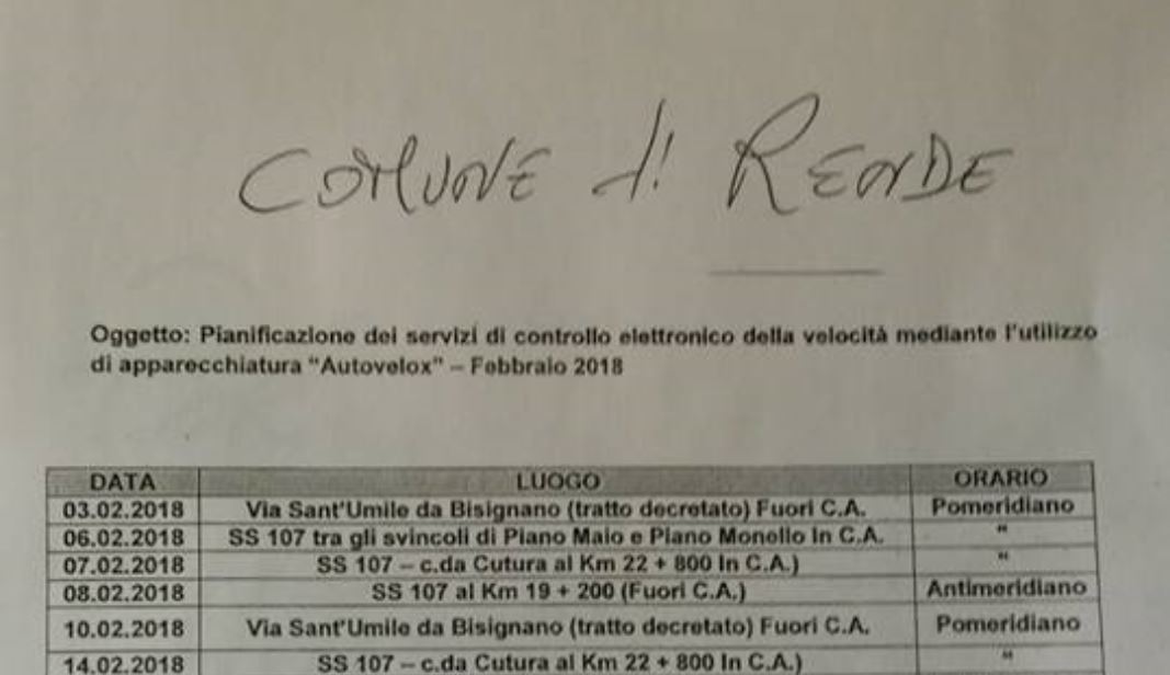 Riceviamo: “Ecco l’elenco dei prossimi controlli di velocità a Rende” Febbraio 2,12:00 AM By Redazione In News