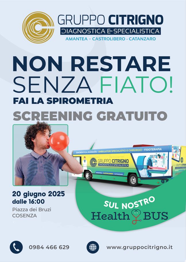 “Non restare senza Fiato” – Domani a Cosenza screening gratuito sull’Health Bus del Gruppo Citrigno Giugno 19,12:00 AM By Redazione In News,Salute,