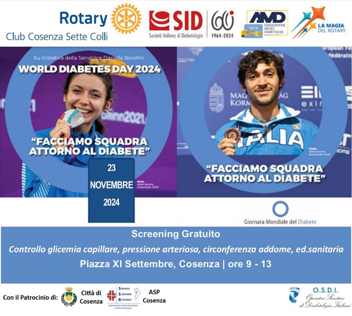 Diabete: screening gratuito a Cosenza, iniziativa del Rotary Club Cosenza Sette Colli Novembre 22,12:00 AM By Redazione In News,Salute|News,Società,