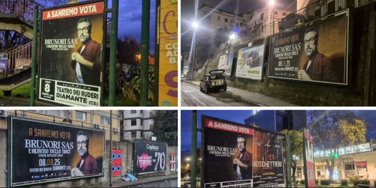 A Cosenza è già Sanremo mania. La città tappezzata dai manifesti “Vota Brunori” Febbraio 4,12:00 AM By Redazione In News,Società,