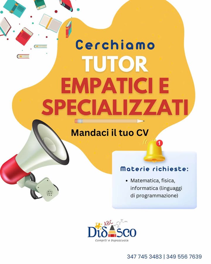 Offerta lavoro: “Didasco Cosenza” ricerca tutor di Matematica, Fisica ed Informatica Novembre 11,12:00 AM By Redazione In News,Società,