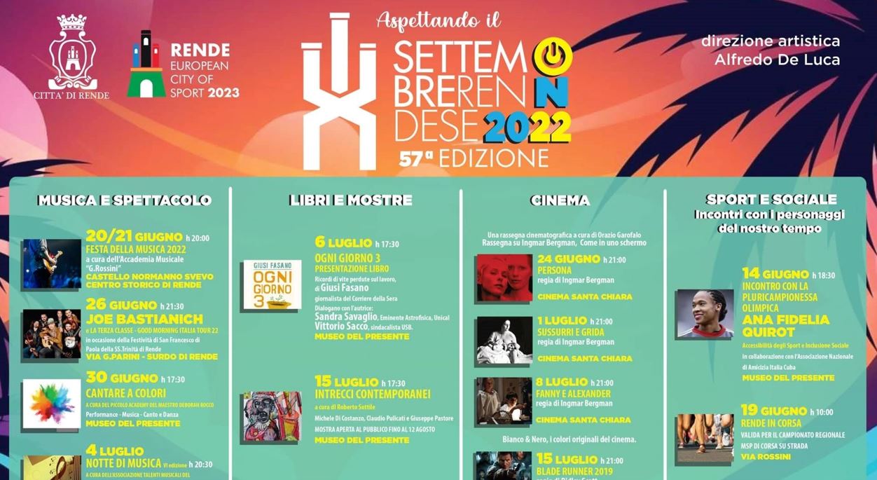 In arrivo “Aspettando il Settembre Rendese” – Il programma degli eventi: Giugno 15,12:00 AM By Redazione In EVENTI,News,Società,TURISMO,