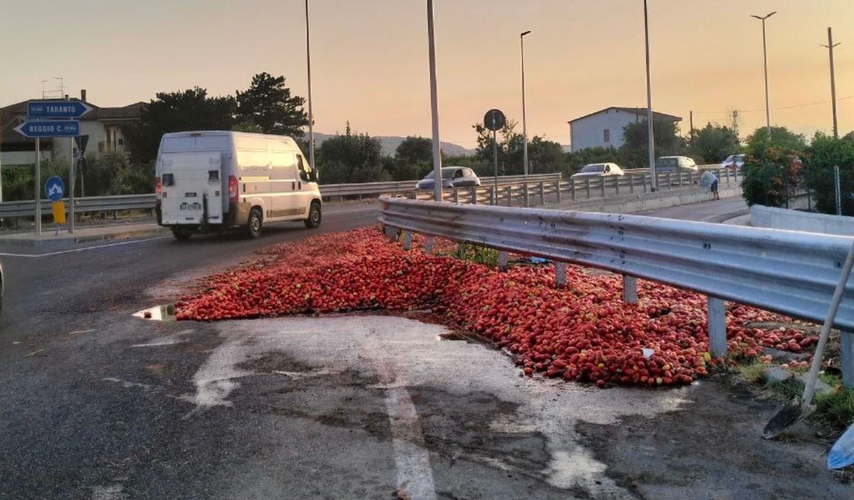 Perde il carico di pomodori sulla 106 – L’autista sparisce, i passanti si fiondano sul bottino Luglio 26,12:00 AM By Redazione In News,Società ,