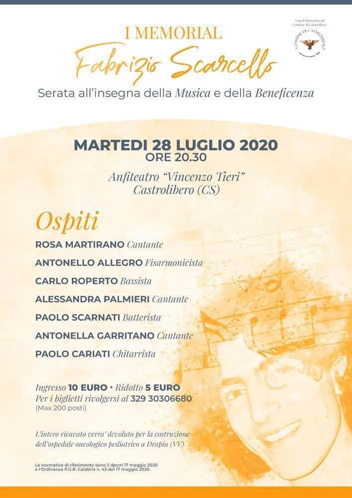 Stasera evento di beneficenza a Castrolibero in ricordo di Fabrizio Scarcello Luglio 28,12:00 AM By Redazione In News,Società,