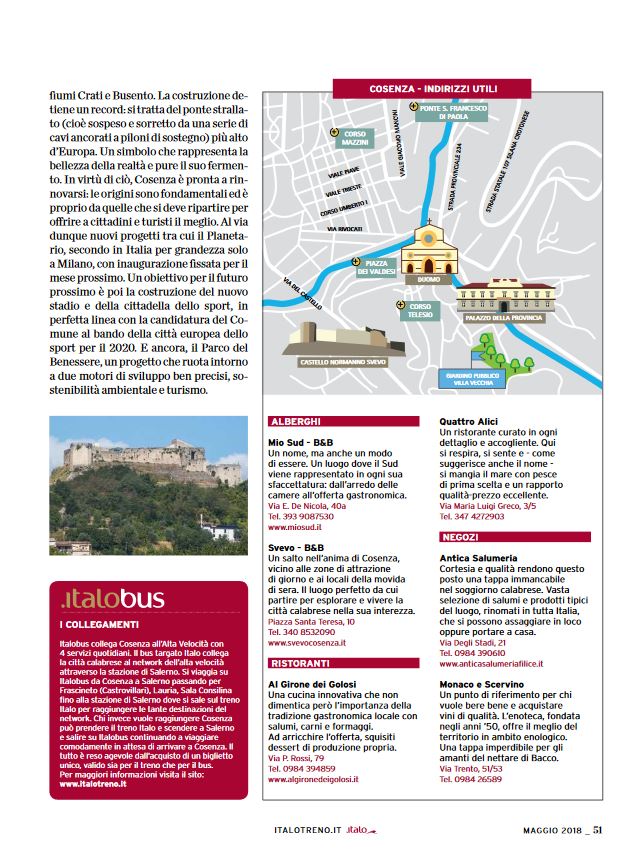 Ampio reportage su Cosenza… nella nuova rivista sui treni Italo Maggio 17,12:00 AM By Redazione In News|TURISMO