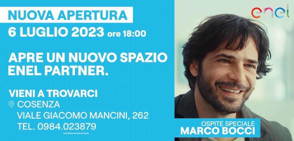 Nuove Aperture: Inaugura domani a Cosenza un nuovo “Spazio Enel”. Ospite Marco Bocci Luglio 5,12:00 AM By Redazione In Nuove Aperture|News,Società,