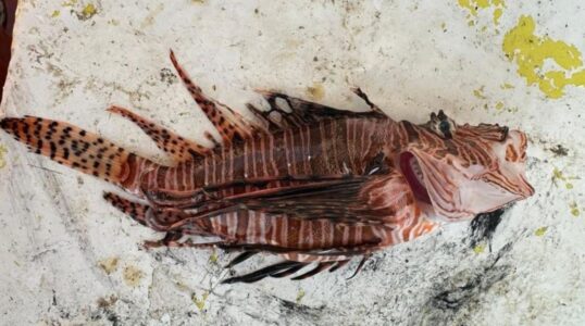 “Una rara specie di pesce tropicale, classificata come ‘aliena’, è stata ritrovata oggi nello specchio d’acqua di Le Castella. Si tratta di un esemplare di pesce scorpione o leone, una specie diffusa nel Mar Rosso e nell’Oceano Pacifico. L’esemplare è finito nelle reti di un pescatore professionista”