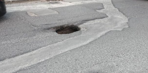 “Nel tardo pomeriggio di oggi nel centro città il manto stradale ha ceduto creando un buco nell’asfalto. E’ successo a piazza Europa di fronte il supermercato che costeggia la rotatoria. “