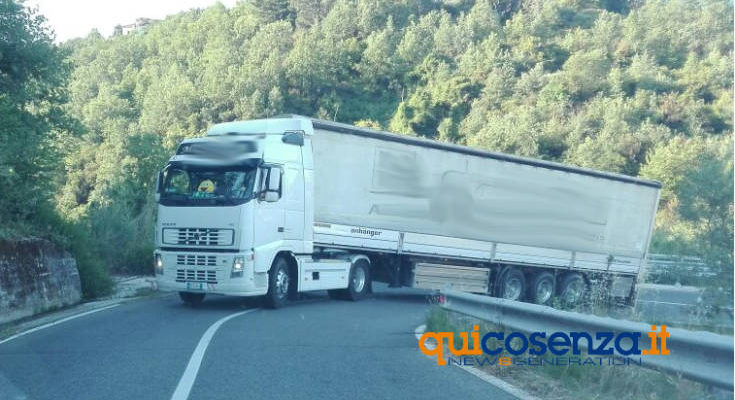 “La foto è stata scattata questa mattina nella frazione Schiavonea di Trenta, diventata l’unico collegamento tra la Presila e l’area urbana dove, secondo le disposizioni di Anas, non possono assolutamente transitare camion e mezzi che superano le tre tonnellate e mezzo. E’ evidente che qualcuno invece non rispetta le disposizioni, come il Tir in foto, che questa mattina, ignorando il percorso alternativo indicato ai mezzi pesanti, si è trovato bloccato all’interno di un tornante creando pericolo per se e per le auto che utilizzano quell’arteria per bypassare il viadotto Cannavino. Ieri la stessa arteria è stata caratterizzata da numerosi disagi e rallentamenti.