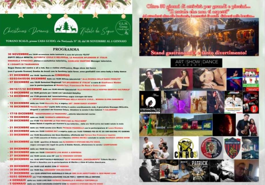 La G.L.M. Group – Grande Eventi è lieta di annunciare l’evento dell’anno: Christmas Dreams – Natale da Sogno. Dal 30 novembre al 5 gennaio, Casa Guido, in via Nazionale n°10, si trasformerà in un magico villaggio natalizio, pronto a incantare grandi e piccini per oltre 30 giorni di festa