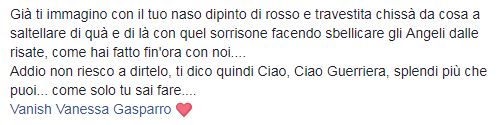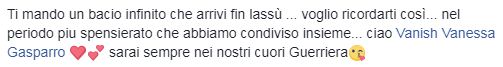 Qui alcuni messaggi che in questi minuti stanno lasciano gli amici sulla bacheca di Vanessa: