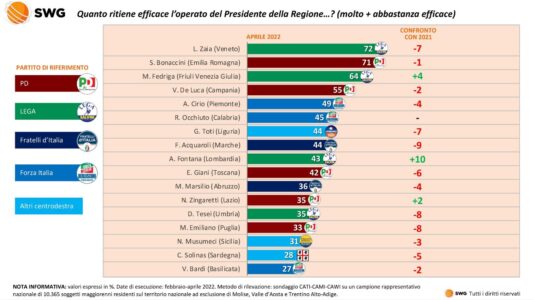 Anche quest’anno SWG ha rilevato il gradimento dei cittadini verso i rispettivi Presidenti delle Regioni